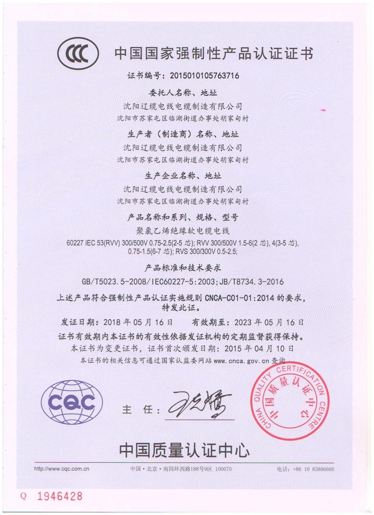 沈陽遼纜電線電纜公司資質(zhì)