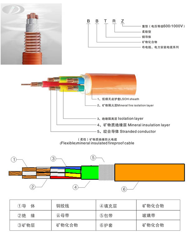 BBTRZ電纜 柔性礦物絕緣電纜 防火電纜特點(diǎn):
